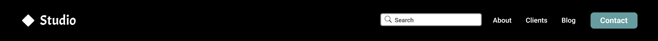 Our design studio needs an updated website. The previous navigation bar was cluttered and not fully responsive, so we would like a redesign from the ground up. Please be sure the final design is fully mobile responsive, and that our "Contact" button is the primary focus. We're in the process of updating the logo too, so feel free to use a substitute of your choice. We'll need a search bar on the right-hand side.